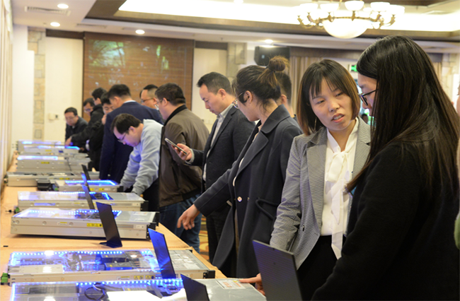 ▲合作伙伴驻足观看Gooxi陈列展品