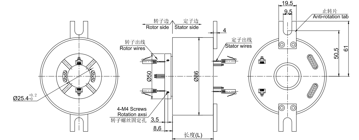 • · ME2252系列2路以太网滑环,网线滑环,内孔25.4mm,外径为标准86mm的紧凑型整体式结构的2通道100M/1000M 以太网整体式精密导电滑环属。