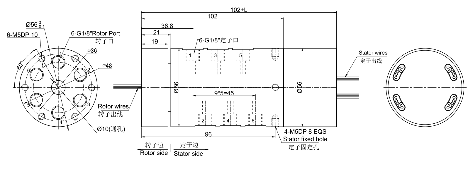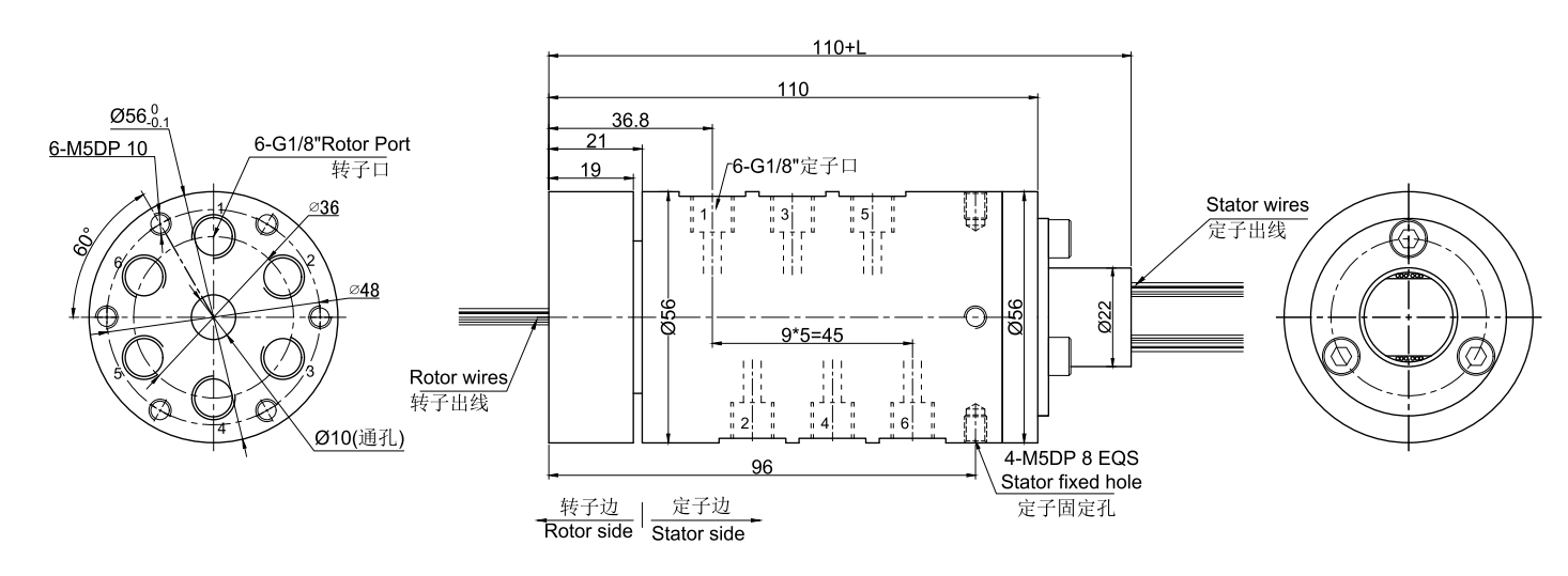 • · MKD61系列6进6出,端面走气,气/气电组合旋转接头,气动滑环,旋转气接头, 带G1/8"牙